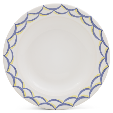 Fayence weiß blau/gelbe Fischschuppen im Kreis Glasur glänzend