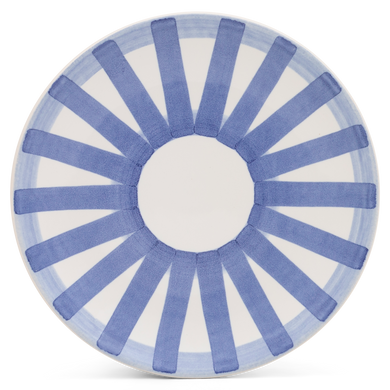 Fayence hellblaues Band dunkelblaue Striche Glasur glänzend