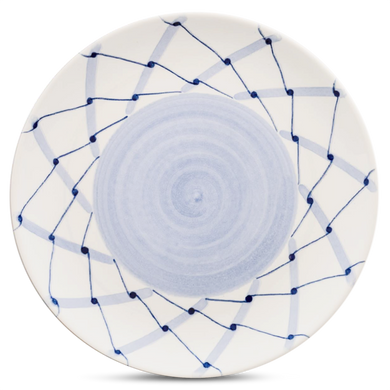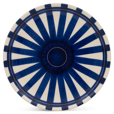 Fayence weiß - blaue und hellblaue Streifen - Glasur glänzend