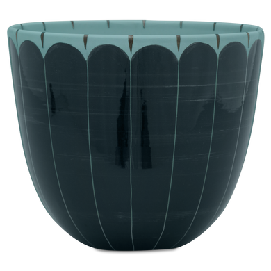 Der große Übertopf von Hedwig Bollhagen mit der Formnummer "765D" verschönert nicht nur die Blumen-, Kräuter- und Pflanzenpracht im Wohnbereich, Garten oder auf Balkon und Terrasse, sondern begeistert zudem ganz praktisch durch multifunktionale Eigenschaften. So kann der 21 Zentimeter hohe Kübel auch problemlos als Bowleschüssel oder Deko-Schale und für diverse andere Zwecke verwendet werden. Den traditionell handgemachten Blumentopf aus Keramik zeichnet ein klassisches Formschema in schlichter, bauchig geschwungener Fasson auf. Dank dieser harmonisch fließenden Gestaltung fügt sich der 24,5 Zentimeter breite Übertopf 765D absolut ausgewogen in sämtliche Kulissen ein und begeistert dabei stets als dezenter, stilvoller Blickfang.